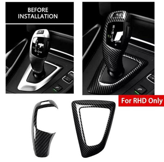 BMW 1 2 3 4 Series Carbon Fibre Automatic Gear Knob & Panel Surround Set RHD 2pc