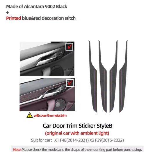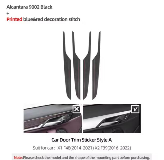 BMW X1 F48 X2 F39 2014-2022 Black Alcantara Door Card Panel Trim Covers 4pcs (A)