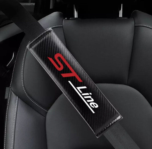 2pcs ST Line Seatbelt Cover Pads PU Leather Carbon For Ford Fiesta Focus Puma