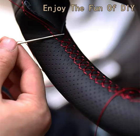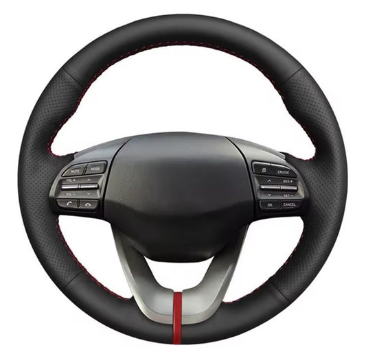 Hyundai I30 Kona Veloster N Leather Steering Wheel Cover Self Stitch Red Thread