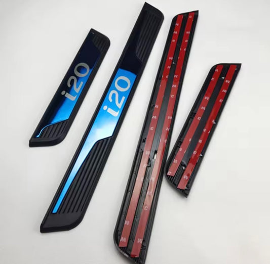 Hyundai i20 Blue Stainless Steel Door Sill Protector Strips Scuff Plates 4pcs