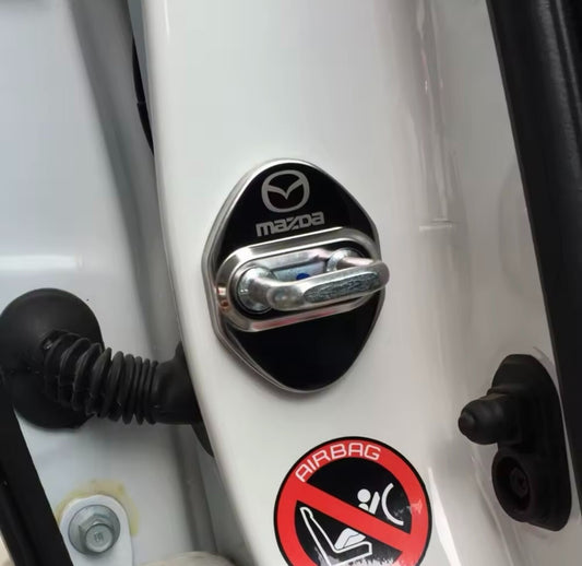 Mazda Silver Stainless Steel Door Lock Catch Protector Covers Accessories 4pcs
