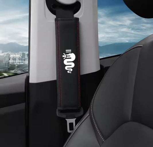 Alfa Romeo Stelvio Giulia MiTo PU Leather Seatbelt Shoulder Cover Pads Black Red