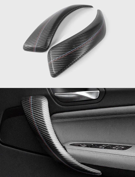 BMW 1 2 Series Carbon Fibre Effect Interior Door Grab Handle Trim Covers 2pcs
