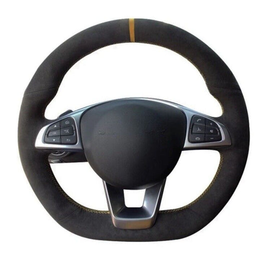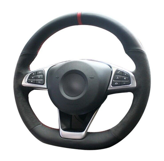 Mercedes A B C CLA Class Suede & Leather Steering Wheel Cover Red Stitch & Line