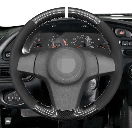 Vauxhall Corsa D 2006-2014 Suede & Carbon Fibre Steering Wheel Cover Black White