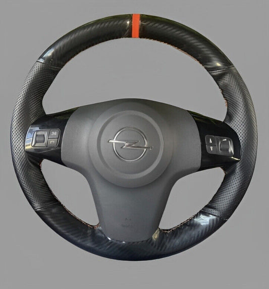 Vauxhall Corsa D 2006-2014 Leather & Carbon Fibre Steering Wheel Cover Black Red