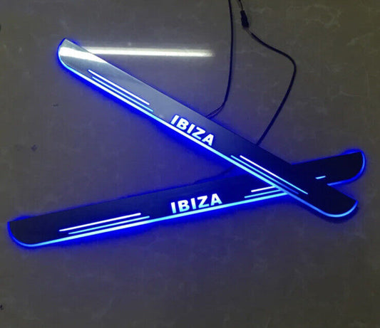 Seat Ibiza Blue LED Door Sill Protector Strips Scuff Plates Kick Plates Chrome