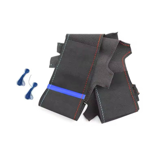 BMW F45 F46 X1 F48 X2 F39 Faux Suede Steering Wheel Cover Self Stitch Blue Red