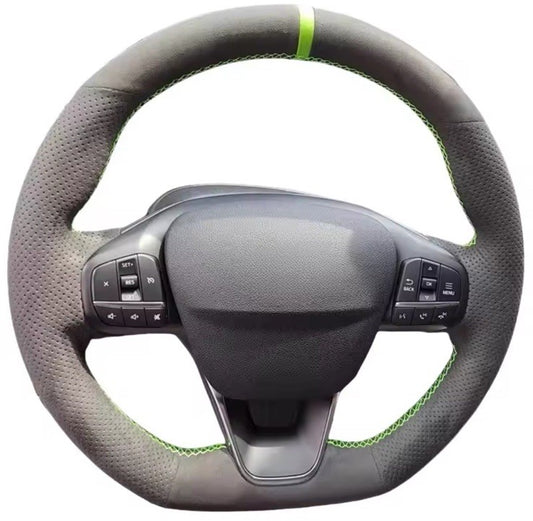Ford Focus MK4 Fiesta MK8 Suede Steering Wheel Cover Self Stitch Green OEM Fit