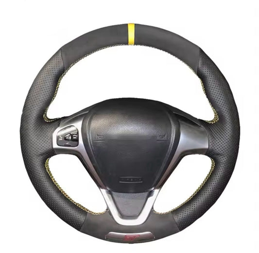 Ford Fiesta ST MK7.5 Genuine Leather + Suede Steering Wheel Cover Yellow Thread