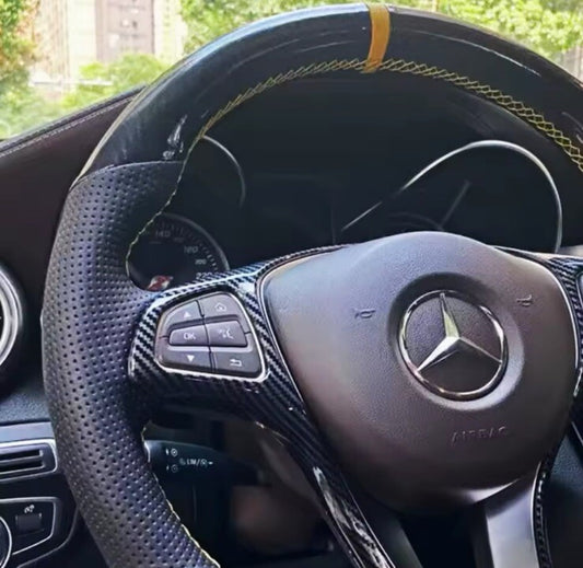 Mercedes W176 W205 W246 C117 C218 Steering Wheel Cover Carbon & Leather Yellow
