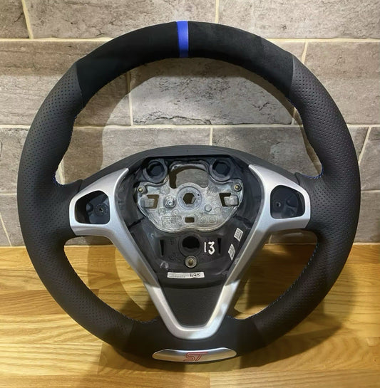 Ford Fiesta ST MK7.5 Genuine Leather + Suede Steering Wheel Cover Blue Thread