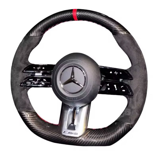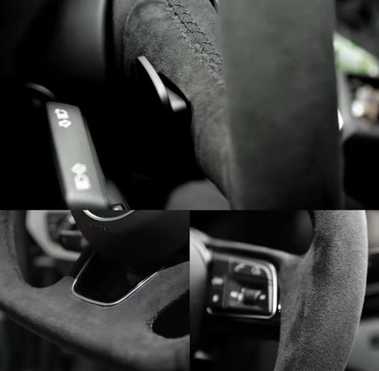 Mercedes A45 E63 GLE53 S65 AMG GT Steering Wheel Cover Carbon & Suede DIY Black