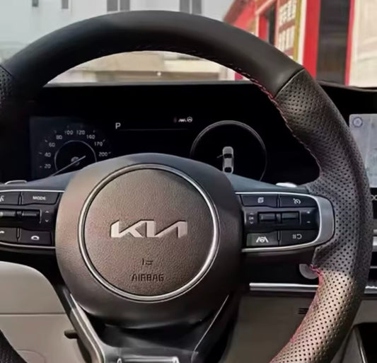 Kia K5 DL3 Sportage GT Line Leather Steering Wheel Cover Self Stitch Red Thread
