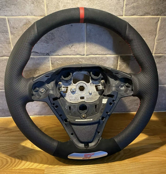 Ford Fiesta ST MK7.5 Genuine Leather + Suede Steering Wheel Cover Red Thread