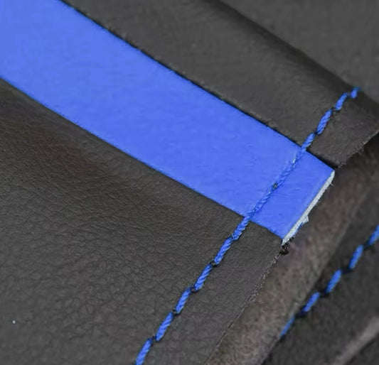 BMW M Sport Self Stitch Steering Wheel Cover Black Faux Leather Blue Thread OEM
