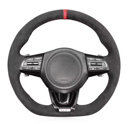 Kia Stinger 2017-2020 Suede Steering Wheel Cover Self Stitch Red Thread Line