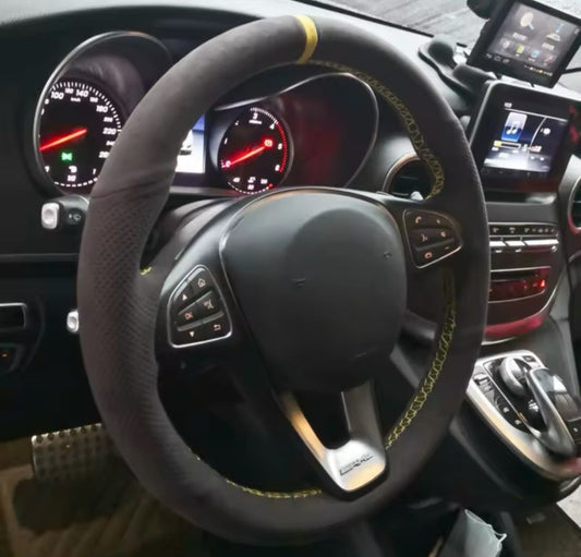 Mercedes C200L E63 E300 E320 GLK GLC260 GLA Suede Steering Wheel Cover Yellow