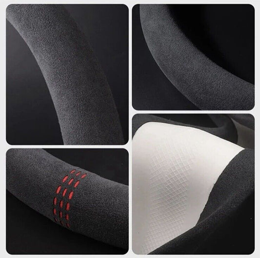 38cm Black Suede Steering Wheel Cover With Red Centre Line Marker Universal Fit