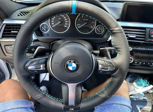 BMW 123456X Series M Sport Leather Steering Wheel Cover Self Stitch Light Blue