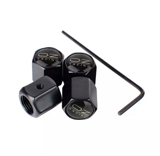 4pcs Black Metal OZ Racing Anti-Theft Tyre Stem Valve Dust Caps Universal Fit
