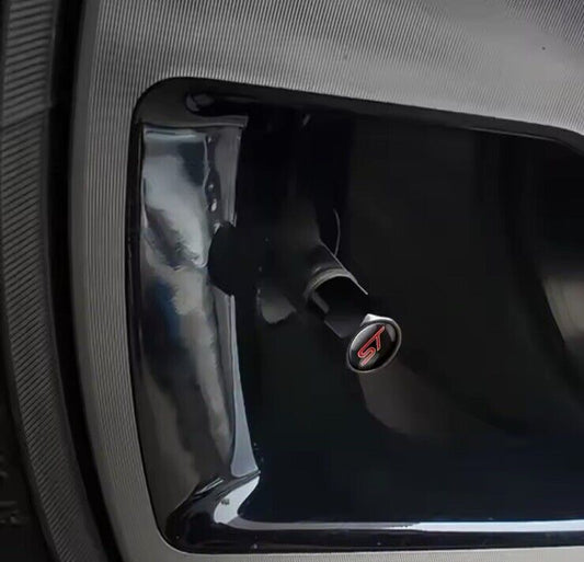 4pcs Black Metal ST Tyre Stem Valve Dust Caps For Ford ST Fiesta Focus Puma ST