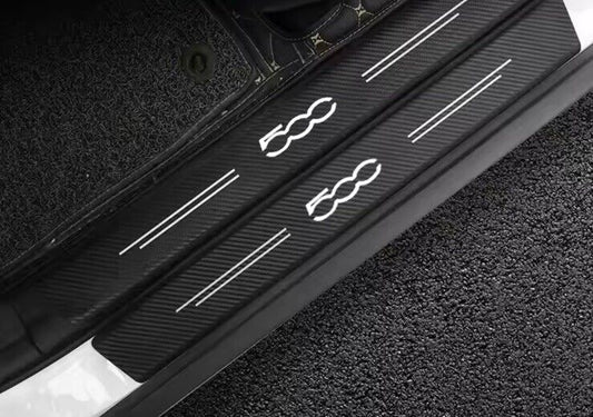 Fiat 500 Carbon Fibre Effect Adhesive Door Sill Overlay Strips Vinyl 4pcs