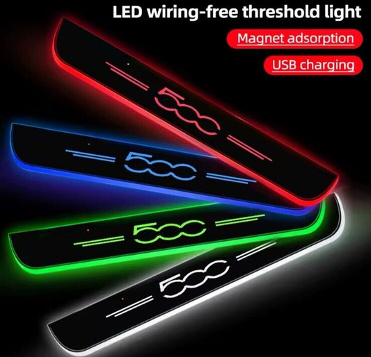 Fiat 500 LED Colour Change Door Sill Protector Strips Scuff Plates Wireless RGB