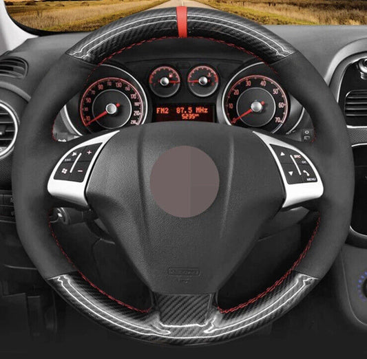 Fiat Punto Bravo Doblo Suede & Carbon Fibre Steering Wheel Cover Black Red