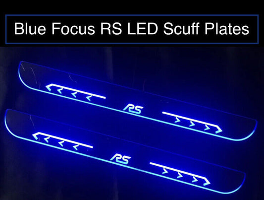 Ford Focus RS Blue LED Door Sill Protector Strips Chrome Scuff Plates 2pcs