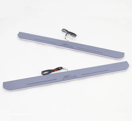 Ford Fiesta Red LED Door Sill Protector Strips Door Scuff Plate Lights Chrome