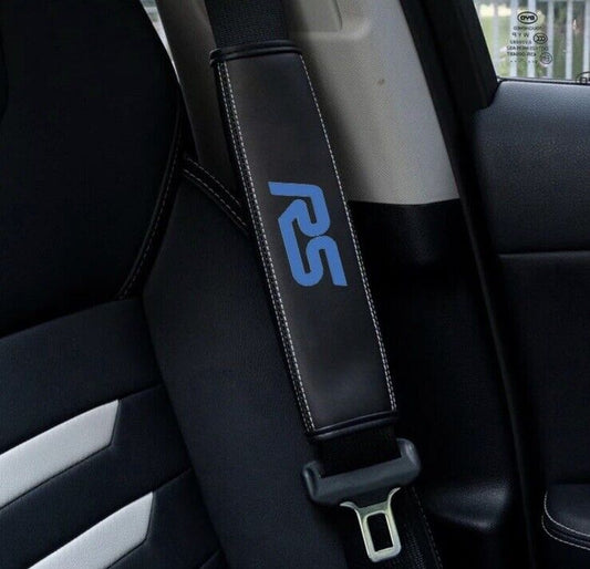 Ford RS Leather Seatbelt Cover Pads For Ford Focus RS Black & Blue 2pcs