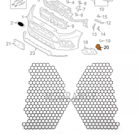 Ford Focus RS MK3 2015-2018 Front Fog Light Trim Intake Mesh Grille Inserts