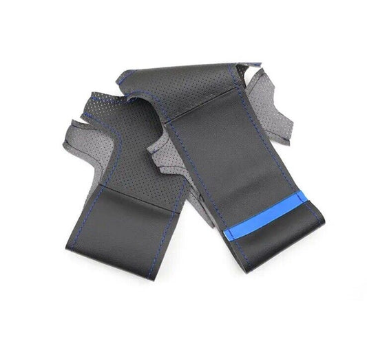Honda Civic MK8 2005-2011 Black Leather Steering Wheel Cover Self Stitch Blue