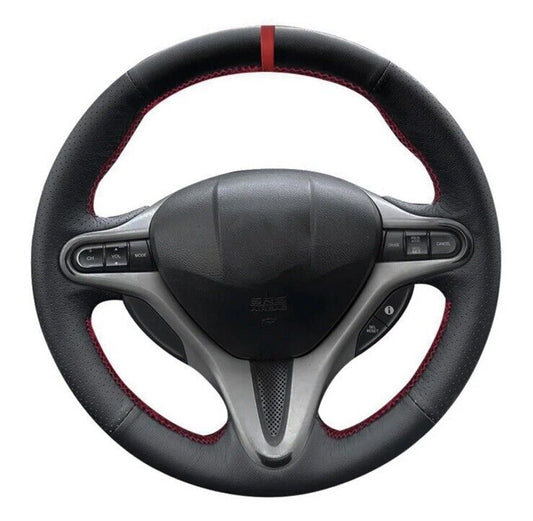 Honda Civic MK8 2005-2011 Black Leather Steering Wheel Cover Self Stitch Red
