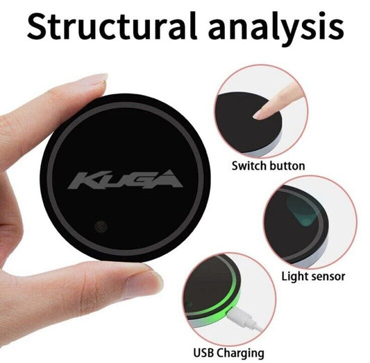 Ford Kuga Wireless Light Up RGB LED Cupholder Drink Coaster Mat For Ford Kuga