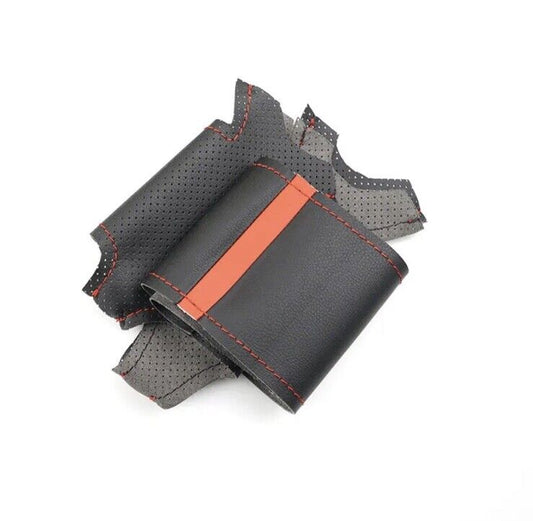 Mini Cooper R56 R57 Black Leather Steering Wheel Cover Self Stich Red Thread