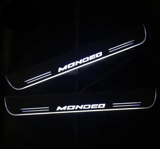 Ford Mondeo White LED Door Sill Protector Strips Door Scuff Plate Lights Chrome