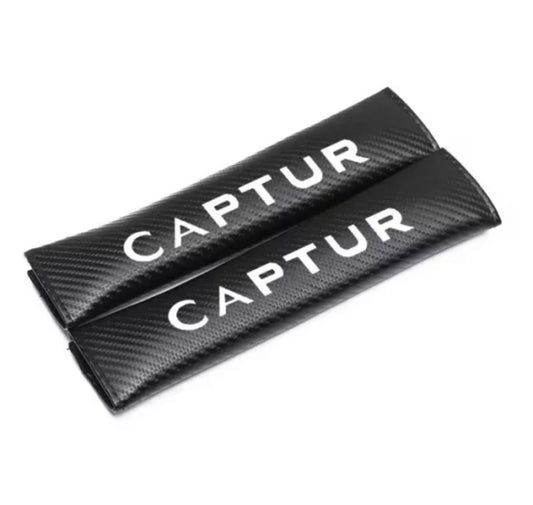 2pcs Renault Captur Seatbelt Cover Shoulder Pads PU Leather Carbon Fibre Effect