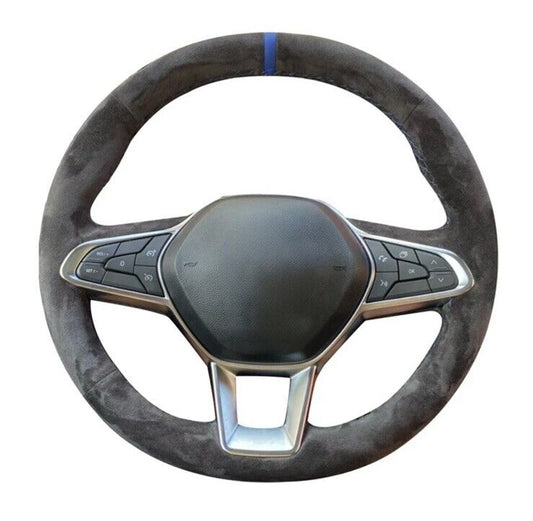 Renault Clio Zoe Captur Suede Steering Wheel Cover Self Stitch Black & Blue